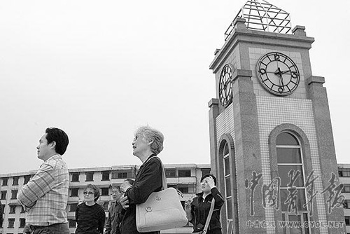 這座凝固的鐘樓,如今被人們稱為“5·12鐘樓”。“原來外頭哪個曉得這個鐘樓呢?”一個叫劉啟祿的小攤主說:“現在全國都曉得,全世界都曉得。”