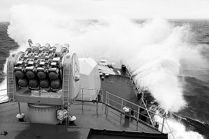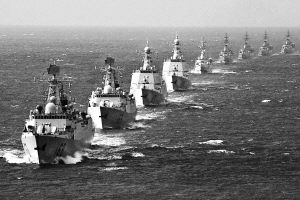 ——2002年5月至9月,中國(guó)海軍艦艇編隊(duì)首次環(huán)球航行,共穿越15條著名海峽水道,橫跨68個(gè)緯度,6次穿越赤道,訪問10個(gè)國(guó)家和港口,總航程33000海里。至此,中國(guó)海軍艦艇編隊(duì)壯游三大洋。同時(shí),一個(gè)新的重大轉(zhuǎn)折也在悄然完成。軍艦走出國(guó)門,開始從單純航渡出訪,轉(zhuǎn)變?yōu)檫h(yuǎn)航訓(xùn)練結(jié)合出訪,甚至是以訓(xùn)練為主。征服遠(yuǎn)海大洋的能力,體現(xiàn)著一支現(xiàn)代海軍的訓(xùn)練水平。1980年10月,南海艦隊(duì)艦艇編隊(duì),首次出巴林塘海峽到太平洋遠(yuǎn)航訓(xùn)練。經(jīng)過海峽西口的“魔鬼三角洲”時(shí),因缺乏經(jīng)驗(yàn),一艘軍艦上的10名艦員被巨浪打下大海,2人遇難。這是人民海軍走向大洋付出的血的代價(jià)。此后,海軍遠(yuǎn)航編隊(duì)經(jīng)驗(yàn)越來越豐富,不畏暗礁險(xiǎn)灘,勇闖驚濤駭浪。在南中國(guó)海,戰(zhàn)艦遭遇狂風(fēng)巨浪,重達(dá)1噸的鐵錨被風(fēng)浪掀上甲板;在太平洋,編隊(duì)遭遇持續(xù)半個(gè)月之久的大風(fēng)浪,滿載排水量為數(shù)萬(wàn)噸的補(bǔ)給艦強(qiáng)烈震顫,逆風(fēng)頂浪,頑強(qiáng)前進(jìn);在比斯開灣,編隊(duì)遭遇12級(jí)大風(fēng),艦體左右搖擺近30度,艦艉螺旋槳多次露出海面……20多年過去,人民海軍遠(yuǎn)航訓(xùn)練已經(jīng)發(fā)展成為一種常態(tài):每年有上百艘次水面艦艇駛向遠(yuǎn)海大洋,晝夜連續(xù)航行從數(shù)百海里到數(shù)千海里,潛艇水下隱蔽待機(jī)由數(shù)十天到數(shù)月,航空兵長(zhǎng)途奔襲由一般氣象條件到復(fù)雜氣象條件,上千艘次艦機(jī)在太平洋海域進(jìn)行多課目訓(xùn)練。