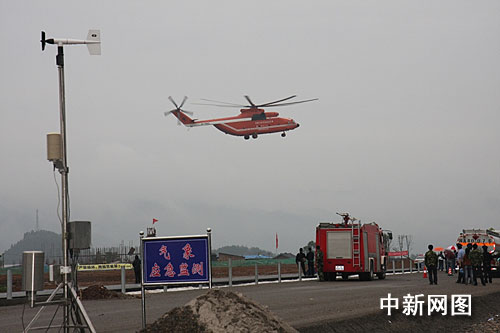 中新網武隆6月11日電(郭虹 單麗靜 夏杰)11日上午上午9時10分,米-26大型運輸直升機首次從重慶南川水江臨時停機坪飛至鐵礦鄉垮塌現場執行吊裝任務,預計分10次吊裝完畢。