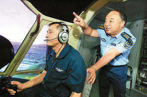 現在,每年都有若干批航空兵作戰部隊飛行員到模擬訓練中心進行戰術訓練。在完成大綱規定訓練課目的前提下,中心根據他們的技術特點,科學設置訓練課目。比如,針對西北地區飛行員長期在較好天氣條件下進行訓練的狀況,模擬訓練中就增加多霧、多云等復雜氣象條件下的戰術訓練;對長期駐扎在內地的飛行員,重點加強海上、沙漠等戰術訓練。