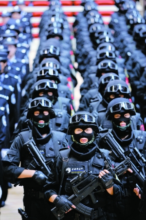 23日,首都舉行國(guó)慶安保誓師大會(huì),民警、武警、消防等3000余名代表宣誓,標(biāo)志著國(guó)慶60周年安保工作全面啟動(dòng)。
