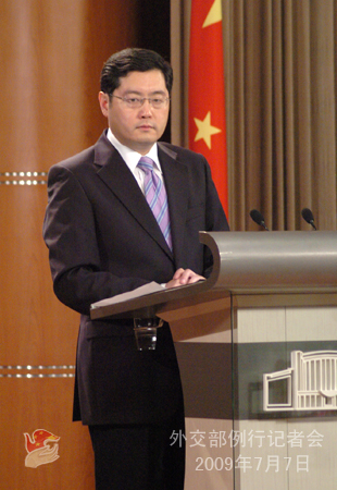 中新網7月7日電 據中國外交部網站消息,2009年7月7日,外交部發言人秦剛舉行例行記者會。答問如下: