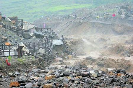 沙州鎮三堆村磚廠因山體滑坡造成正在排除作業的裝載機駕駛員1人死亡,大壩鄉趙思碧因強行過河被洪水沖走失蹤。
