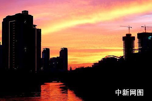 昨天傍晚,眾多市民在橫跨護城河的南園橋上觀賞火燒云景觀時,發(fā)出聲聲贊嘆。市民王先生有點自得的對記者說,他根據(jù)白天的云層情況,判斷出當天很可能還會出現(xiàn)火燒云,所以早早的守候在這里觀看,果真如愿看到了完整的火燒云變化情況。