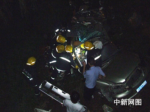 事后據悉,事故發生時,車上共有五人。轎車墜落時,后排的三人被摔出窗外,并當場死亡。被救出的兩名傷員,被送往醫院后,目前駕駛室的司機已經不治身亡,副駕駛室的一名女性乘客目前還在搶救中,尚未脫離生命危險。