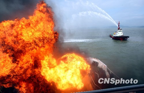 中新網(wǎng)9月4日電 隨著指揮船發(fā)射3枚紅色信號彈,新中國建國以來最大規(guī)模的海上搜救演習(xí)9時在寧波-舟山港的佛渡水道海域正式開始。