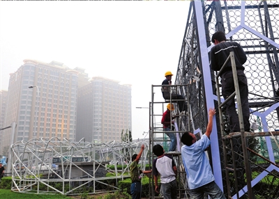 昨天凌晨1點(diǎn),國慶花壇“鳥巢”、“水立方”等景觀骨架基本成型,“降落”在長安街東單路口。這意味著國慶花壇的布置大幕正式拉開,長安街花壇將陸續(xù)上崗。此外,從即日起,朝陽公園橋東等環(huán)線花壇景觀也將相繼搭建完成。
