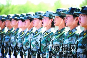 在女民兵方隊(duì),隊(duì)員們訓(xùn)練歸來最愛開的一個(gè)玩笑,便是撩開“劉海兒”,欣賞各自腦門上那道黑白分明皮膚,互相打趣:“咱們可以給美白護(hù)膚產(chǎn)品作‘活廣告了’。”