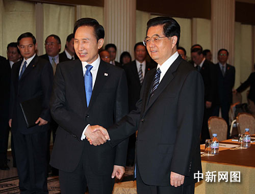 李明博說,明年韓國將舉辦20國集團峰會。中方對此給予的支持,韓方表示感謝,并希望繼續得到中國的合作。