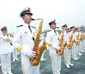 解放軍聯合軍樂團,是整個國慶閱兵游行隊伍中,唯一的靜態表演方陣,也是唯一參加游行全部過程的方陣。方陣的近4000名成員,將佇立廣場4個多小時,使閱兵游行時激昂的樂聲貫穿始終。