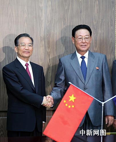 中新網(wǎng)平壤10月4日電(記者 周兆軍)中共中央政治局常委、國務(wù)院總理溫家寶四日在平壤萬壽臺議事堂同朝鮮總理金英日舉行會(huì)談。