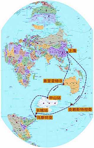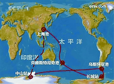 按計劃,雪龍號此行的大致路線是:從上海經新西蘭的克萊斯特徹奇港到長城站,再從長城站到阿根廷的烏斯懷亞港進行補給,后經此港到達中山站,完成科考任務后返回上海。