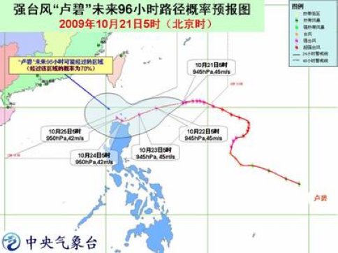 “盧碧”的中心21日5時(shí)位于菲律賓馬尼拉東北方大約940公里的西北太平洋洋面上,就是北緯20.4度、東經(jīng)127.6度,中心附近最大風(fēng)力有14級(45米/秒)。
