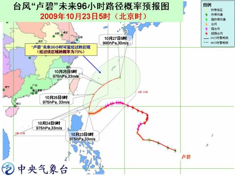 受“盧碧”和南下弱冷空氣的共同影響,23日白天至夜間,臺灣以東洋面、巴士海峽、巴林塘海峽、臺灣東南部沿海將有8-10級大風(fēng),部分海域或地區(qū)陣風(fēng)可達11-12級;“盧碧”中心經(jīng)過的附近海域的風(fēng)力有11-12級,陣風(fēng)可達13-14級;臺灣海峽、東海南部、南海東北部、福建中部沿海也將有6-7級大風(fēng),部分海域或地區(qū)陣風(fēng)可達8-9級;臺灣東北部有大到暴雨,局部有大暴雨。