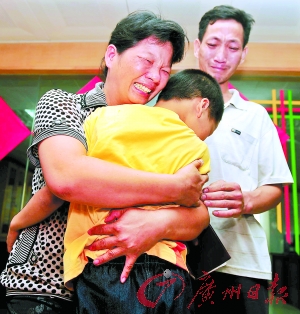 昨日,好消息終于傳來,經過DNA數據對比,“寶貝尋家”中編號為16的孩子被證實為東莞高埗鎮菜販顧先生夫婦的親生兒子顧金龍,他成為60名兒童中第二位找到親生父母的男童。昨日下午1時多,5年多未見過親生兒子的顧先生夫婦一把抱過兒子,喜極而泣。悲喜交集的母親含淚向民警下跪致謝。