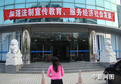 中新網海口12月3日電(付美斌)3日下午,海口市工商局大樓正門口上方掛出的一條橫幅“加強法制宣傳教育,服務經濟社會發展。”引起路人關注:“出現‘砒霜門’事件是工商局工作人員法制意識淡薄?”