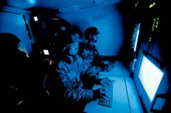 在行動的各個環節,擔負干擾的“藍軍”電磁分隊加緊實施干擾。“藍軍”電磁分隊不時釋放錯誤誘導信息,干擾“紅軍”指揮通信,誘使裝甲車隊向錯誤地域開進,“紅軍”指揮員及時啟用隱蔽指揮網接受上級命令,各級指揮員迅速采取應對措施,開通新的通信網絡。隨著信息對抗的展開,“藍軍”啟動多種干擾方式對“紅軍”指揮控制通信系統進行干擾壓制,紅方指揮員啟用反干擾預案,綜合運用多種手段對抗,并設置佯動通信網,對“藍軍”實施戰術欺騙,保障了指揮通信的順暢。“藍軍”隨即啟用動態干擾網絡,搜尋“紅軍”指揮通信網,采取從短波、超短波、到微波接力等多波段覆蓋式干擾壓制,此時的“紅軍”大部通信方式中斷,采取有線通信、衛星通信與運動通信相結合的方式,保證了不間斷的指揮。