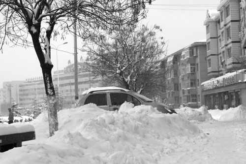 3 日下午開始,青島市各地陸續出現降雪過程。這是 2010年青島市降下的第一場雪。