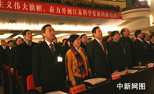上午9點15分,江蘇省委書記、省人大常委會主任梁保華宣布大會開幕,全體代表起立唱國歌。羅志軍省長代表省人民政府向大會作政府工作報告。
