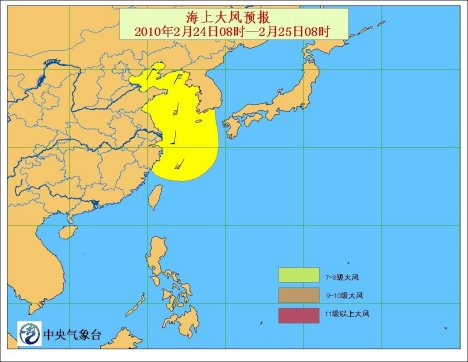中央氣象臺、中國海上搜救中心提醒受大風影響海域航行、作業的船舶,注意航行安全。