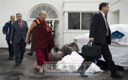 2月18日,會見結束后,達賴興高采烈地告訴守候在白宮的美國媒體:“奧巴馬總統非常支持我!钡D身后,自恃為“貴賓”的達賴卻被“主人”從白宮后門請出。