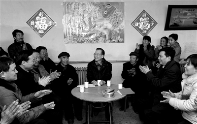 在蘇洪喜的家中,溫家寶向鄉親們介紹了政府的三農工作,懇請鄉親們對政府工作提意見。