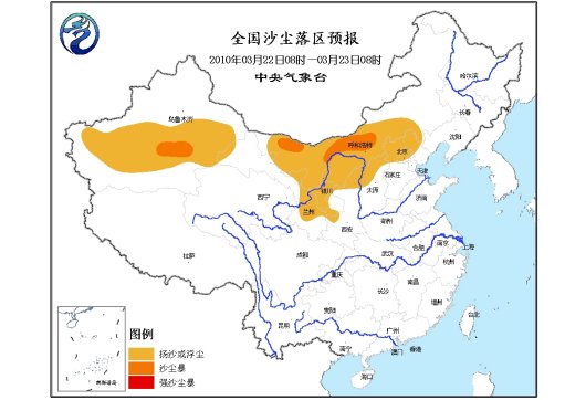 中新網3月22日電 中央氣象臺22日06時發布沙塵暴藍色預警:受冷空氣影響,22日08時至23日08時,南疆盆地、甘肅中部的部分地區、內蒙古中西部、寧夏大部、陜西北部、華北北部等地有揚沙或浮塵天氣,其中,南疆盆地東部、內蒙古中西部偏北的部分地區有沙塵暴,上述地區并有5~6級偏北風,陣風風力可達7級。