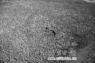 陸良縣德格海子水庫(kù)庫(kù)容160萬(wàn)立方米,由于持續(xù)干旱已干涸見底。20日下午,溫家寶曾來(lái)過(guò)這里。記者現(xiàn)場(chǎng)放眼望去,水庫(kù)庫(kù)底一條條縱橫交錯(cuò)的裂痕一望無(wú)垠,近看密密麻麻的泥塊像梅花樁一樣,裂痕深度足有二十厘米,上面還依稀可見干枯死的河蚌。