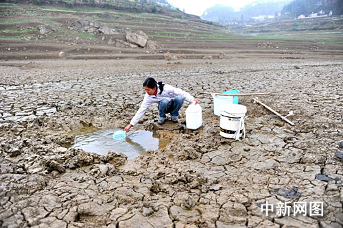 中新網貴陽3月24日電 題:貴州開陽縣干旱災區見聞:飲用水源庫底水族成“化石”