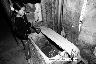 偏僻落后的牛角村,以種植畜養為主的原始經濟遭遇強旱后,人均年收入已降至600多元。村里的一些年輕人本想外出打工,卻遭遇入不敷出的困境。楊昌毅就曾到深圳做過兩年保安,“每個月1200元工資,只能在當地養活我自己,我家里還有父母,兩個小孩和老婆,根本劃不來。”像楊昌毅這樣在牛角村里已經算是能講普通話、會認字的“文化人”。而記者在采訪中了解到,更多的牛角村民連自己名字也不會寫,普通話只能聽懂一半!八麄兂鋈ゴ蚬,只能重復我的命運”,楊昌毅說,而且“每個星期都要下山挑水,沒有年輕人在家,老人怎么辦?” 南方日報特派記者謝慶裕