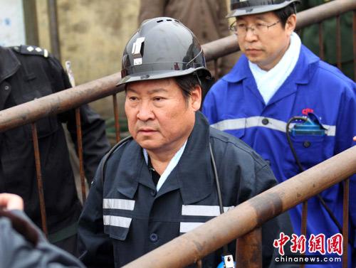 中新網河津3月31日電(張云)王家嶺礦透水事故搶險進入第四天,救援搶險仍在緊張進行。31日中午,國家安監總局局長駱林,安全監管總局副局長、國家煤礦安監局局長趙鐵錘,山西省長王君下井視察搶險進度。
