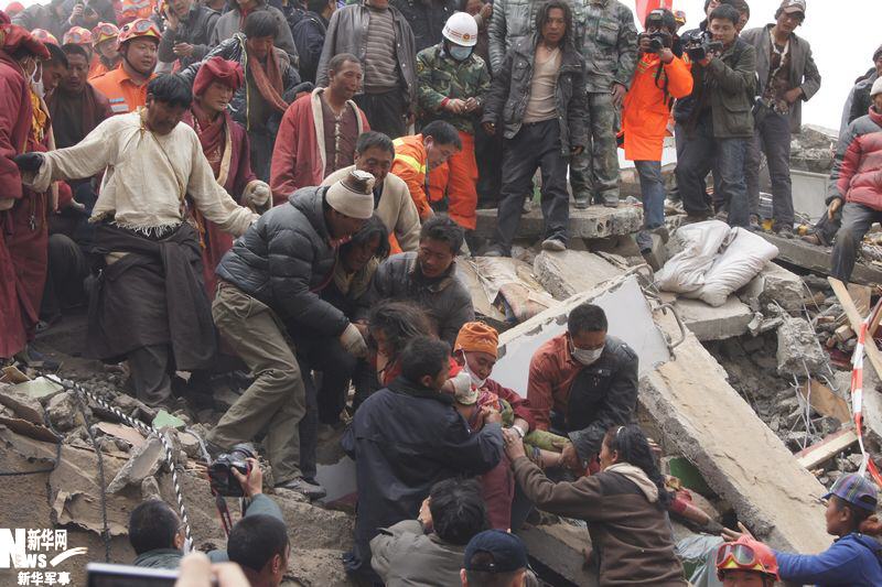 玉樹大地震發生54小時后,4月16日13時48分,在玉樹縣結古鎮勝利路上的一堆廢墟里,救援隊員和藏區群眾一起,成功營救了一位名叫次乃擁青的13歲藏族女孩。