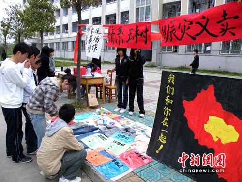 中新網(wǎng)鄭州4月19日電 (記者 師紅壘 通訊員 張涵)自青海玉樹發(fā)生7.1級地震以來,震區(qū)的災(zāi)情一直牽掛著河南省信陽師院學(xué)子的心。4月18日下午,文學(xué)院學(xué)生自發(fā)組織的“情系災(zāi)區(qū),匯聚愛心”跳蚤市場賑災(zāi)義賣活動舉行。