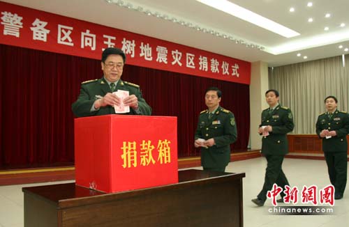 在“向玉樹地震災(zāi)區(qū)捐款儀式”上,警備區(qū)全體官兵脫下軍帽,低頭為玉樹遇難同胞默哀1分鐘。隨后,鄭州市委常委、警備區(qū)政委高方斌、警備區(qū)司令員李恕海和部門以上領(lǐng)導帶頭捐款,廣大官兵和職工紛紛慷慨解囊。捐款現(xiàn)場氣氛高漲,在外學習、探親、休假、出差的23名官兵以不同形式委托戰(zhàn)友替自己代捐,今年被確定轉(zhuǎn)業(yè)的10多名干部也趕到了現(xiàn)場參加捐款儀式。大家只有一個信念:齊心合力、眾志成城,幫助災(zāi)區(qū)群眾渡過難關(guān)。官兵們紛紛表示,雖不能到玉樹一線抗震救災(zāi),現(xiàn)在以捐助之情緩解一下災(zāi)區(qū)人民的燃眉之急,為災(zāi)區(qū)人民送上一絲溫暖,幫助災(zāi)區(qū)同胞渡過難關(guān)、戰(zhàn)勝災(zāi)害。 完