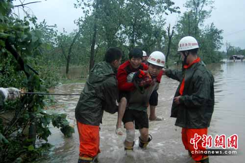 重慶消防透露,6日強風雹暴雨致墊江縣新民鎮一居民樓內群眾被困,被困的3棟居民樓四周積水超過1米,樓群離安全地帶最近處有80米,造成部分居民無法出行。當日下午17時30分許,重慶消防特勤支隊第二分隊趕到現場營救被困居民。經研究,消防官兵們先派出了一名戰士涉水到被困地點,將安全繩栓在居民樓上,由此連接“兩岸”, 經過一小時的救援,消防官兵成功從居民樓內背出9名被困群眾。