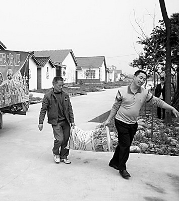 文縣玉壘鄉馬家溝行政村稻吉山曾坐落在高山頂,離山下10多公里,羊腸小道灑滿山民辛酸淚。地震中稻吉山村毀于一旦,在政府的幫助下,村民們在山下白水江畔川壩地帶建起漂亮的新家園。村民張克富利用國家補助兩萬元和貸款3萬元,加上自籌經費,建起一座建筑面積140平方米磚混結構的樓房。屋里擺設和城里人一樣闊綽,庭房里大沙發、茶幾、彩電、電視柜、冰箱一應俱全。