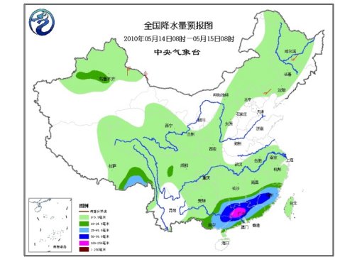 14日08時至15日08時,新疆北部、西藏東部、川西高原大部有小到中雪(雨)或雨夾雪,其中,西藏東南部的部分地區有大雨;西北地區大部,內蒙古中東部、東北大部、華北西部和北部、江淮大部、江漢、江南、華南大部、西南地區東部、云南西北部和東南部有小到中雨或陣雨,其中,湖南南部、江西南部、福建大部、廣西東部、廣東大部等地有大到暴雨,廣東西北部及廣西東北部等地的局部有大暴雨;上述部分地區還伴有短時雷雨大風等強對流天氣。新疆大部、甘肅西部、內蒙古大部、東北等地有4~6級風,山口地區風力可達8~9級,南疆盆地、柴達木盆地、甘肅西部、內蒙古西部等地的部分地區有揚沙或浮塵天氣,局地沙塵暴。東海南部有5~7級東北風轉東南風;臺灣海峽將有5~7級東北風;臺灣以東洋面有5~6級東到東南風;北部灣有4~6級偏南風。