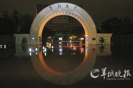 暨南大學昨晚再次遭受嚴重水浸,之前被惡搞的“暨大威尼斯分校”風光再現。在行政樓的地下車庫前,保安們正在加緊壘高沙包,但依然無法阻擋水流入車庫。保安告訴記者,由于有了7日那場暴雨的教訓,因此昨晚早已提前把車庫里的車輛清空。