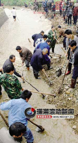 “嗨喲!嗨喲!”16日上午,溆浦縣千工壩灌溉干渠沿線喊聲震天,千余名當(dāng)?shù)厝罕妼@條懷化地區(qū)最大的引水工程進(jìn)行了搶修。