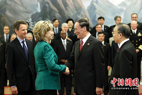 中新網北京5月24日電(記者 張蔚然)第二輪中美戰略與經濟對話開幕式今天上午9時許在人民大會堂舉行。中國國務院副總理王岐山、國務委員戴秉國、美國國務卿克林頓、財政部長蓋特納出席。