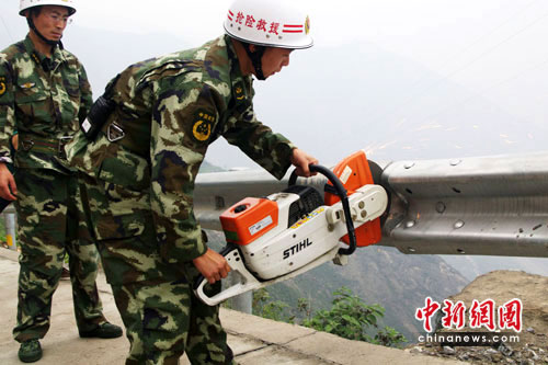 據(jù)汶川縣公路局局長(zhǎng)王永新介紹,排險(xiǎn)工作結(jié)束后,汶川縣公路部門將爭(zhēng)取用6個(gè)小時(shí)左右時(shí)間搶通出一條臨時(shí)過往便道。目前,汶川縣公路部門已出動(dòng)30名路政、道班人員和4輛裝載車原地待命,只等山體排險(xiǎn)工作結(jié)束,立刻開展垮塌路段的土石清理,全力搶通道路。