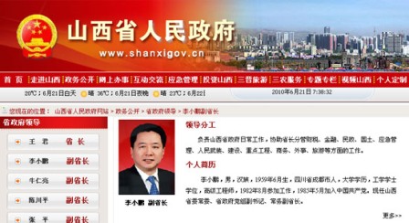 據山西省人民政府網站“省政府領導”欄目顯示,日前,李小鵬同志任山西省政府黨組副書記、常務副省長職務。