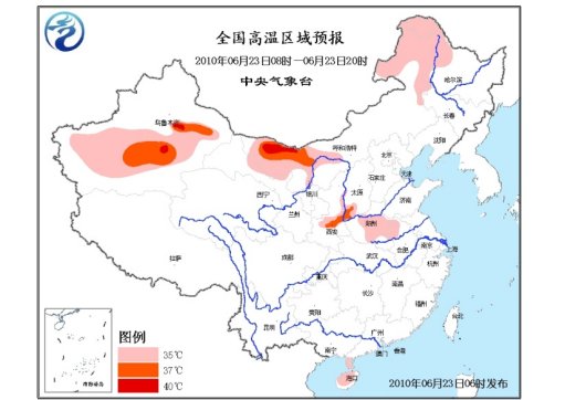 中新網(wǎng)6月23日電 中央氣象臺6月23日06時繼續(xù)發(fā)布高溫藍(lán)色預(yù)警:預(yù)計,今天白天,甘肅西部偏北地區(qū)、寧夏北部、內(nèi)蒙古西部和東北部、黑龍江西部、山西西南部、河南中東部、安徽西北部、陜西關(guān)中地區(qū)以及海南大部有35~37℃的高溫天氣,其中,內(nèi)蒙古西部的局部地區(qū)最高氣溫可達(dá)40~41℃。新疆南疆盆地大部以及吐魯番和哈密地區(qū)將有35~37℃的高溫天氣,其中,吐魯番盆地最高氣溫可達(dá)40℃。
