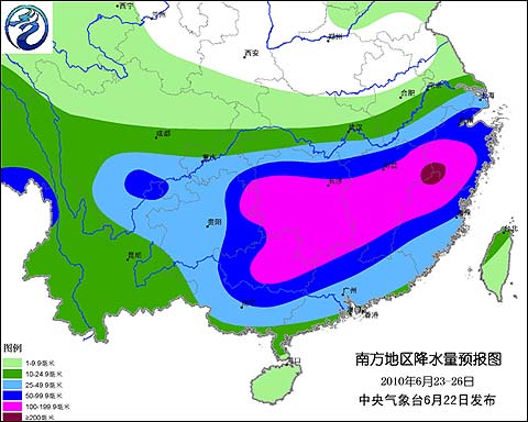預(yù)計(jì)23日至26日,江淮、江南、華南大部以及西南地區(qū)東部等地又將出現(xiàn)一次強(qiáng)降雨過程。貴州東部、湖南、江西、浙江、福建、廣西、廣東北部有大到暴雨,局部地區(qū)有大暴雨,并將伴有短時(shí)雷雨大風(fēng)等強(qiáng)對流天氣;過程降雨量有50-120毫米,局部地區(qū)可達(dá)150-260毫米。湖南、江西、福建、廣西等地的汛情將進(jìn)一步發(fā)展,建議各地、各有關(guān)部門及時(shí)采取措施,加強(qiáng)防范區(qū)域性洪澇災(zāi)害和嚴(yán)重次生災(zāi)害。