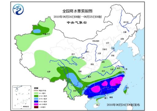 中新網(wǎng)6月24日電 據(jù)中央氣象臺網(wǎng)站消息,未來三天,青藏高原及其以東大部地區(qū)多降雨天氣,其中,貴州南部、江南中南部、華南大部等地有大到暴雨,局地有大暴雨;西藏東部、云南北部和東部、川西高原南部等地有大雨;上述部分地區(qū)并伴有短時雷雨大風(fēng)或冰雹等強對流天氣。受高空槽東移影響,新疆北部多降雨,其中,新疆天山的部分地區(qū)有大雨。