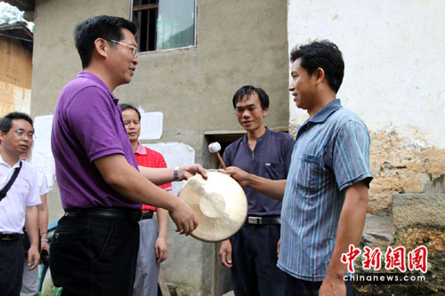 在聽取許多村民的建議后,當(dāng)?shù)毓俜經(jīng)Q定按照村民的意愿,采用比較原始的方法,為全縣每個村屯配發(fā)一面銅鑼,每個村屯指定一名地質(zhì)災(zāi)害防御信息員,由縣財政發(fā)放310元工作補貼。信息員平時對本屯的地質(zhì)情況進行檢查監(jiān)測,發(fā)現(xiàn)情況立即通知居民撤離到安全地帶,并上報國土和相關(guān)部門,在緊急情況下,信息員采取敲鑼的方式通知居民立即撤離到指定的地點。