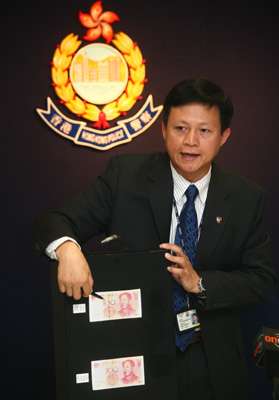 商業罪案調查科數字顯示,去年檢獲逾萬張假人民幣中,83%為假100元,數量為8500多張,50元和20元檢獲近1400張,而HD90字頭則占總數29.2%。商業罪案調查科專家及支援小組署理總督察阮錦亮說,檢獲的假人民幣并非高質素偽鈔,90%為柯式印刷,10%是數碼打印,質素屬一般或差劣,無證據顯示香港的兌換店成為偽鈔分銷點。