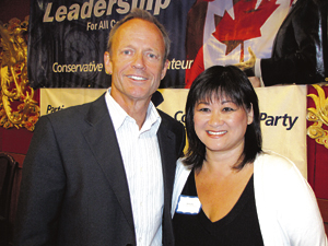 中新網7月9日電 據加拿大《星島日報》報道,加拿大國庫局局長兼亞太門戶部長戴國衛(Stockwell Day),7日參加聯邦保守黨溫哥華南(Vancouver South)選區華人候選人楊蕭慧儀的籌款餐會。