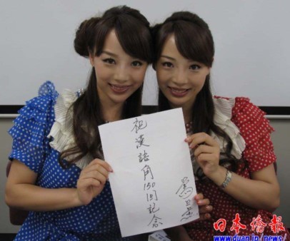 中新網(wǎng)7月21日電 據(jù)日本僑報(bào)報(bào)道,活躍在日本NHK電視臺(tái)漢語教學(xué)節(jié)目的中國湖北雙胞胎姊妹組合“鶯和燕”(中國名黃鶯、黃燕),7月19日在東京參加第二屆漢語節(jié)時(shí),特地來到日本僑報(bào)社的展位前,聽取了該社創(chuàng)辦星期日漢語角的情況介紹。得知漢語角創(chuàng)辦三周年紀(jì)念大會(huì)將于8月8日在東京舉行時(shí),姐妹倆非常高興地題寫了“祝漢語角150回”,表達(dá)她們對(duì)日本朋友學(xué)習(xí)漢語的支持。