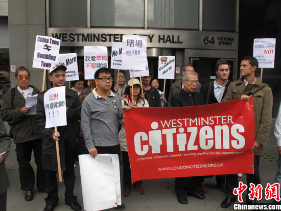 中新社倫敦9月16日電(記者 魏群)來自“倫敦公民”組織及多個華社的30余人,16日前往倫敦威斯敏斯特市政府,呼吁停止在倫敦華埠附近發放新的賭博場所經營牌照,以保持均衡的社區發展及健康的唐人街風貌,免使倫敦華埠淪為倫敦“賭埠”。